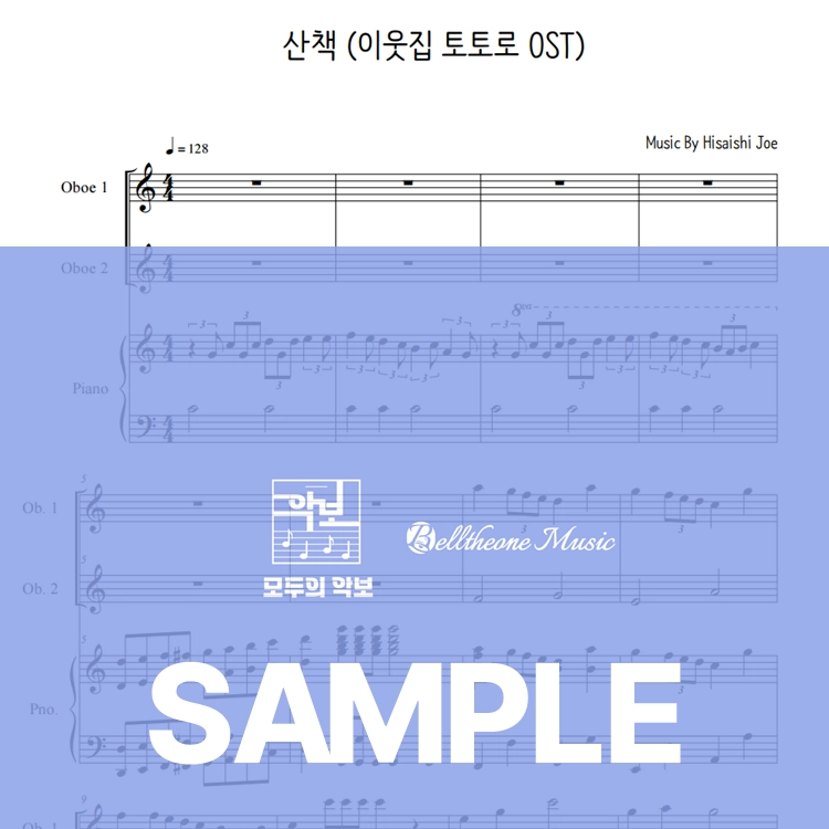 이번 악보는 이웃집 토토로OST 산책 오보에1,오보에2,피아노 구성의 3중주 악보입니다.