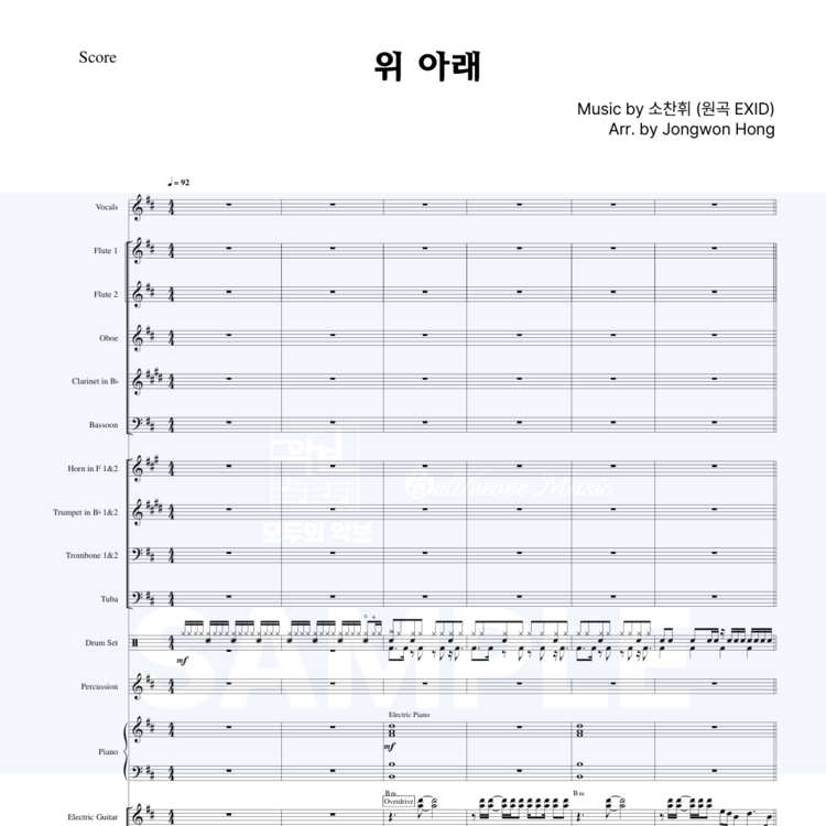 | 편성 | Orchestra (오케스트라), Band (밴드) Vocal, Flute 1,2, Oboe, Clarinet, Bassoon, Horn 1,2, Trumpet 1,2, Trombone 1,2, Tuba, Drum Set, Percussion, Piano, Electric Guitar, Electric Bass, Violin 1,2, Viola, Cello, Double Bass |